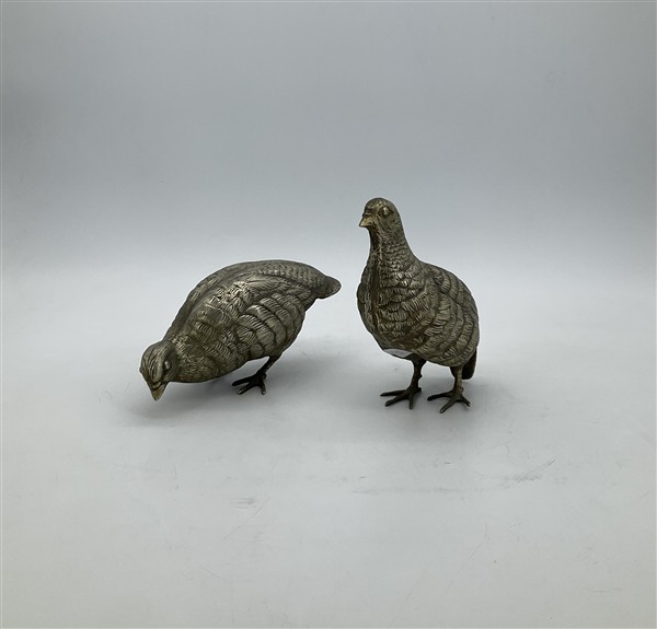 Lotto composto da cinque sculture in metallo argentato raffiguranti diversi volatili (h max cm 32) (difetti)