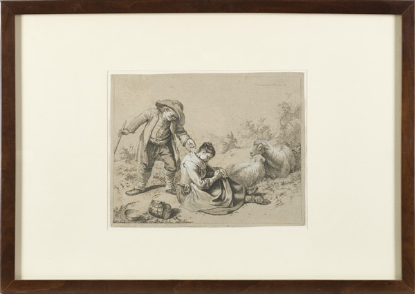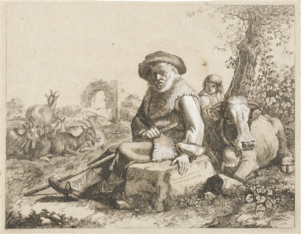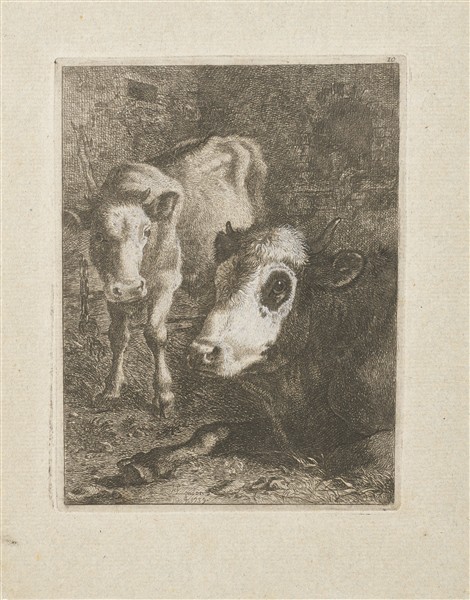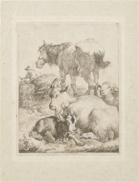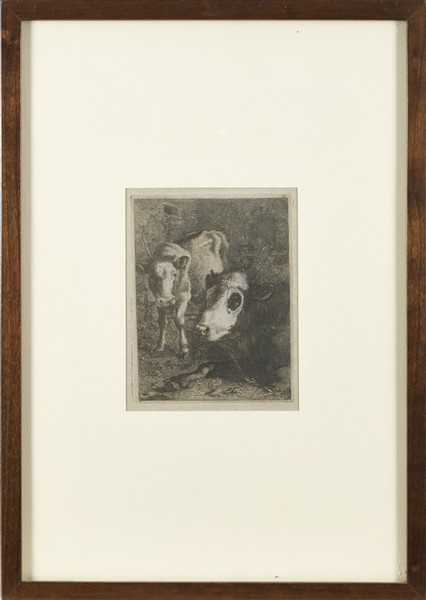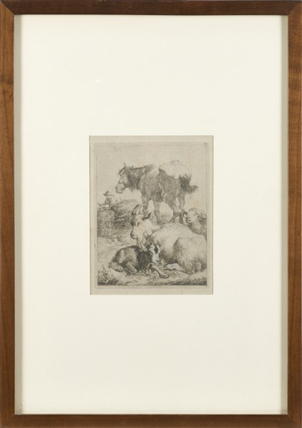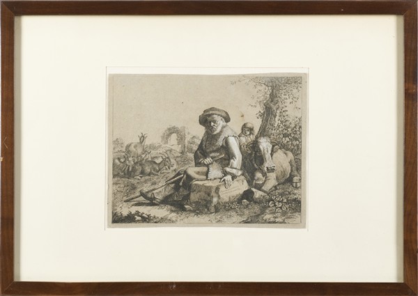 Gruppo di quattro incisioni raffiguranti "Paesaggi con armenti", di misure differenti