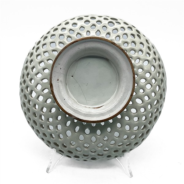 Manifattura di Faenza, secolo XVII. Crespina in maiolica bianca traforata decor