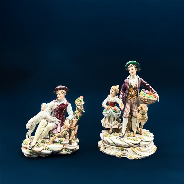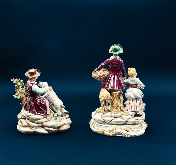 Lotto composto da due gruppi pastorali in porcellana policroma e una coppia di