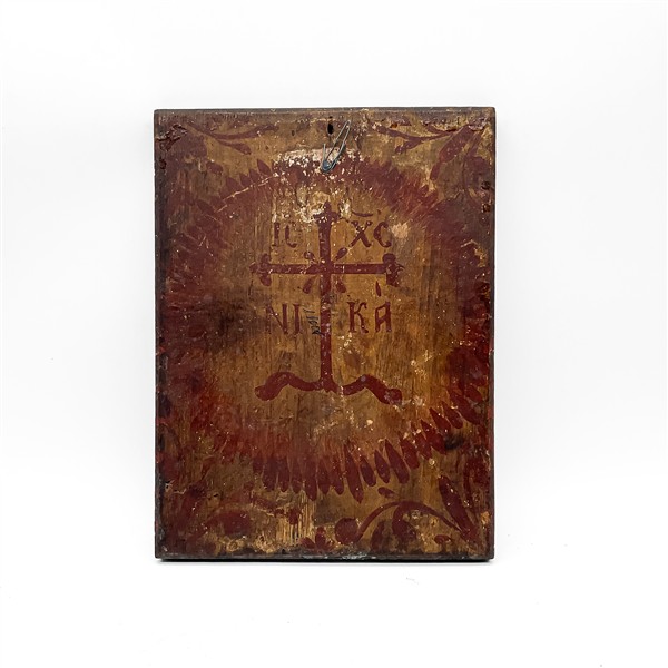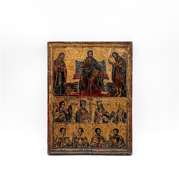 Icona a tempera su tavola raffigurante la Deesis e santi (cm 31,5x24)