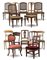 Lotto composto da quattordici diverse sedie in legno, alcune con parti incannucciate (difetti)