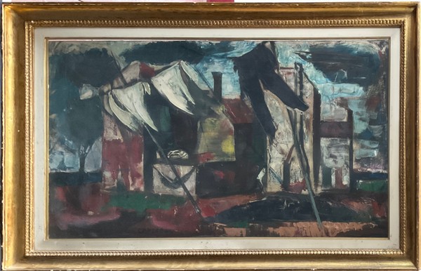 Silvio Consadori "Burano" olio su tela (cm 60x100) Firmato in basso al retro: f