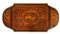 Tavolino da centro a bandelle impiallacciato e intarsiato in legni vari a trofe
