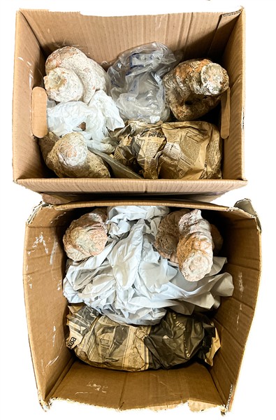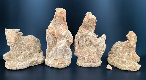 Lotto di diverse figure da presepe in terracotta. In due cartoni (difetti e rot
