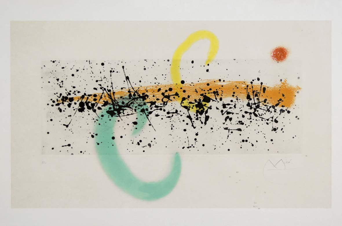 MIRO' JOAN Montroig 1893 - Palma di Maiorca 1983 Lune et vent 1963 acquaforte acquatinta/Rives es. H. C. 21x58 - 52,5x80,5 cm firma in basso a destra tiratura in basso a sinistra autentica della Galleria d'Arte Moderna San Giorgio Mestre su foto provenienza Galleria Maeght Parigi