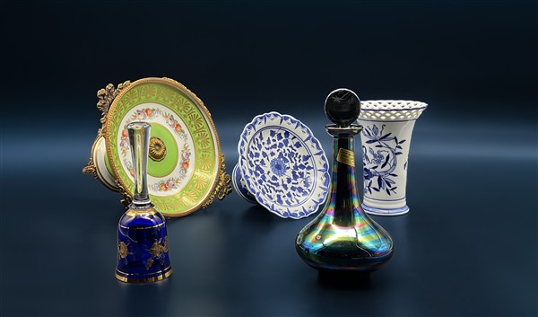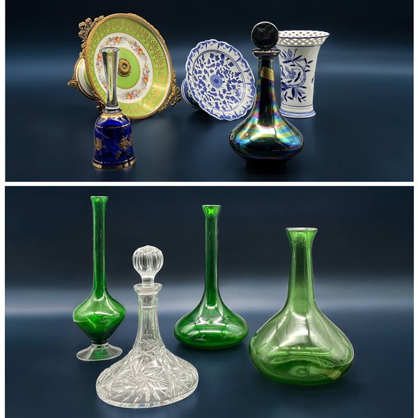 Quattro cartoni contenenti numerosi oggetti in ceramica e vetro di di diverso uso e forma (difetti)