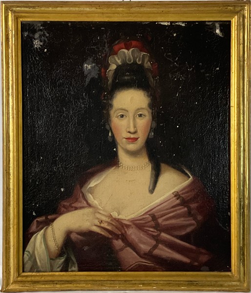 Scuola del secolo XVIII "Ritratto di dama con scialle" olio su tela in cornic