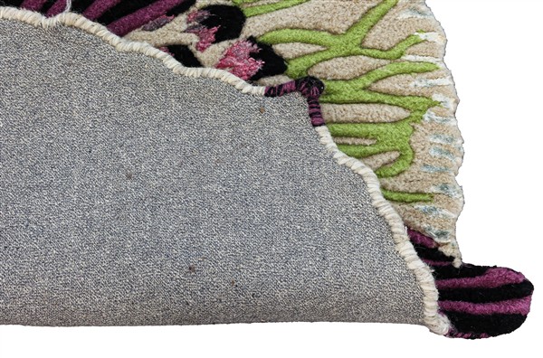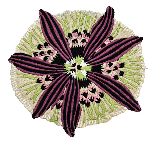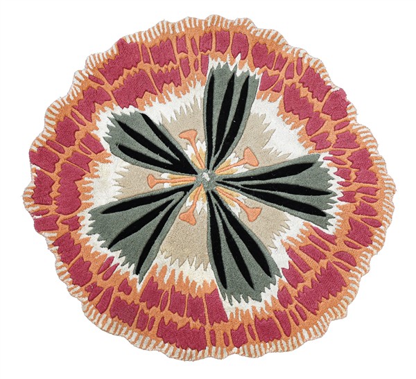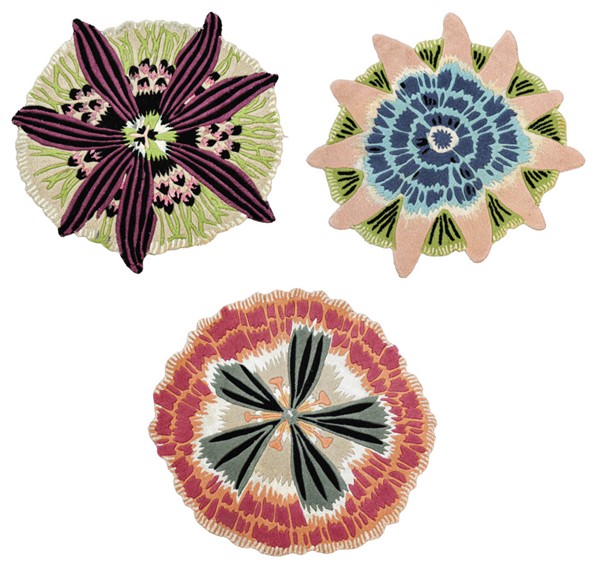 MISSONI. Tre tappeti sagomati in lana e fibra vegetale di recente manifattura realizzati mediante agugliatrice. Decoro floreale policromo. Etichetta "Missoni casa" al retro (d. cm 100 ca.) (difetti)