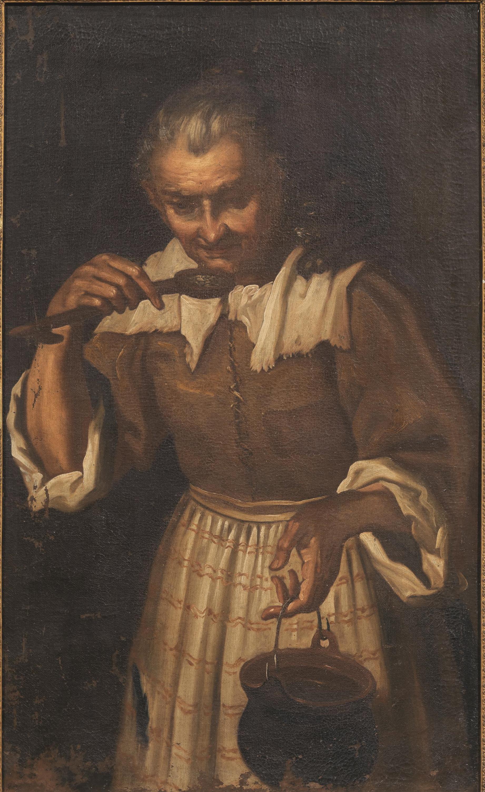 Scuola lombarda, sec. XVIIIANZIANA DONNA CHE ASSAGGIA LA MINESTRAolio su...