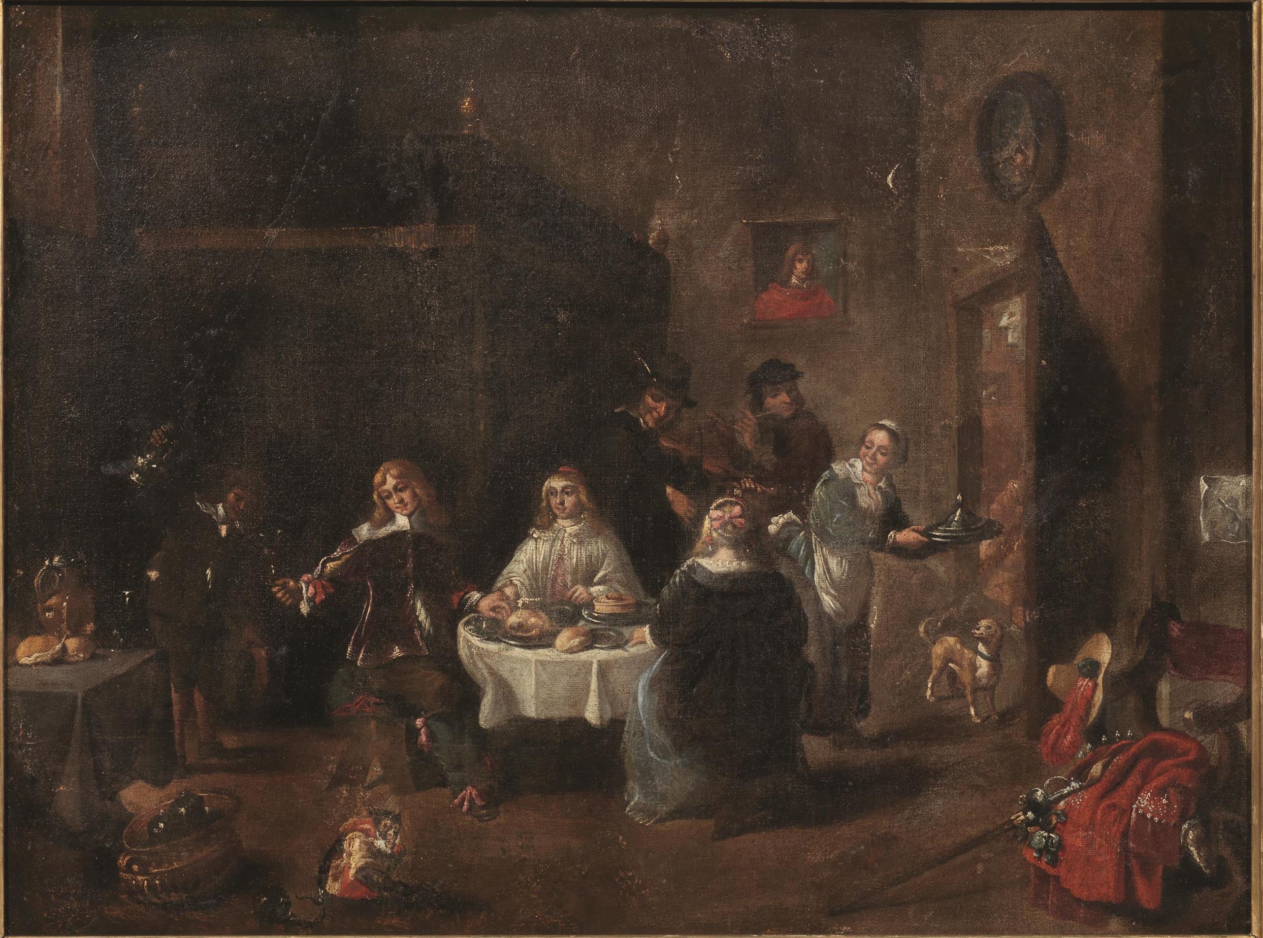 Scuola fiamminga, sec. XVIISCENA D'INTERNOolio su tela, cm 54x70