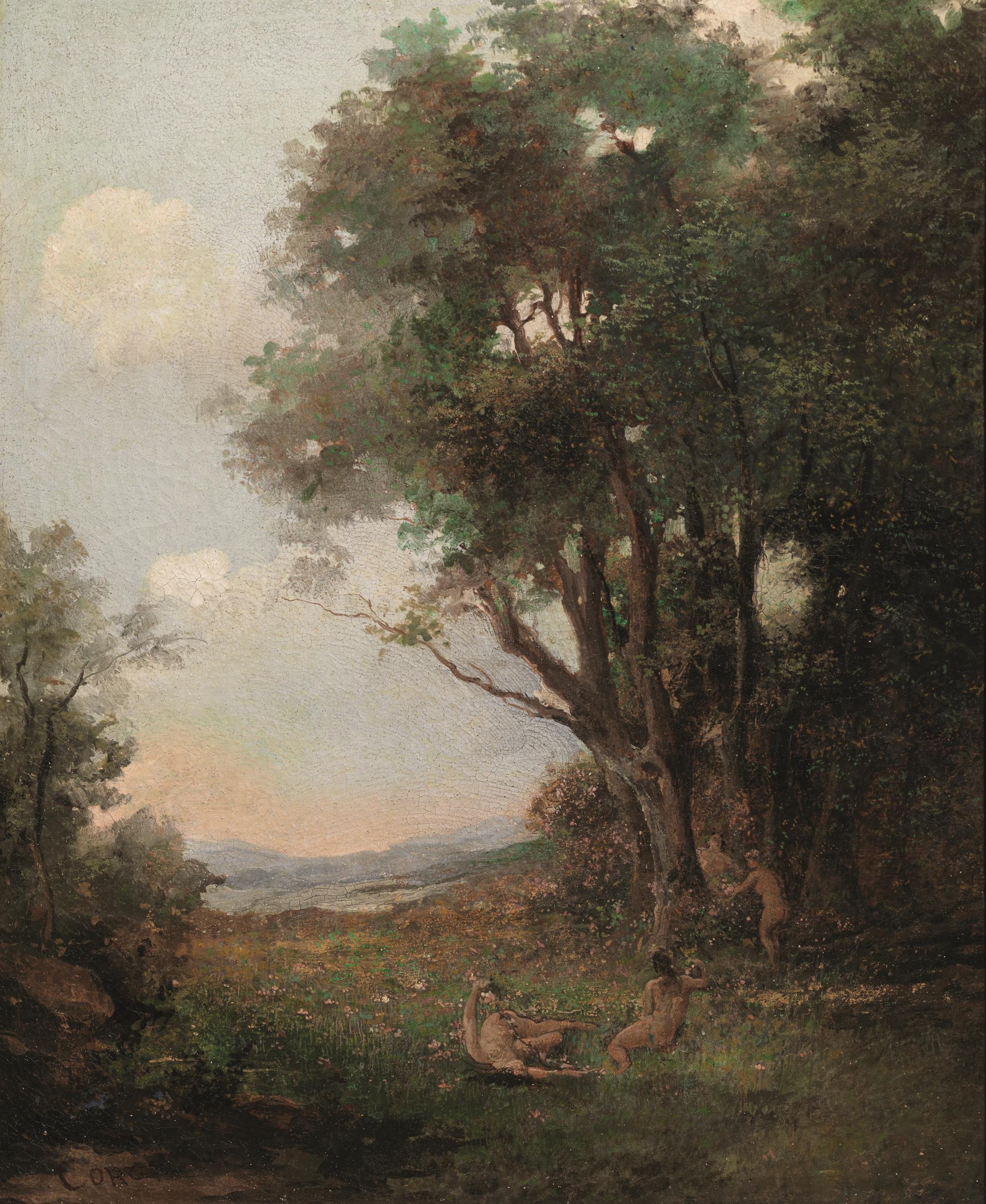 recante firma apocrifa "Corot" in basso a sinistra