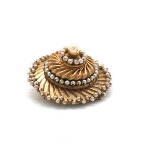 In metallo dorato con micro perle sui lati e una finta perla centrale.