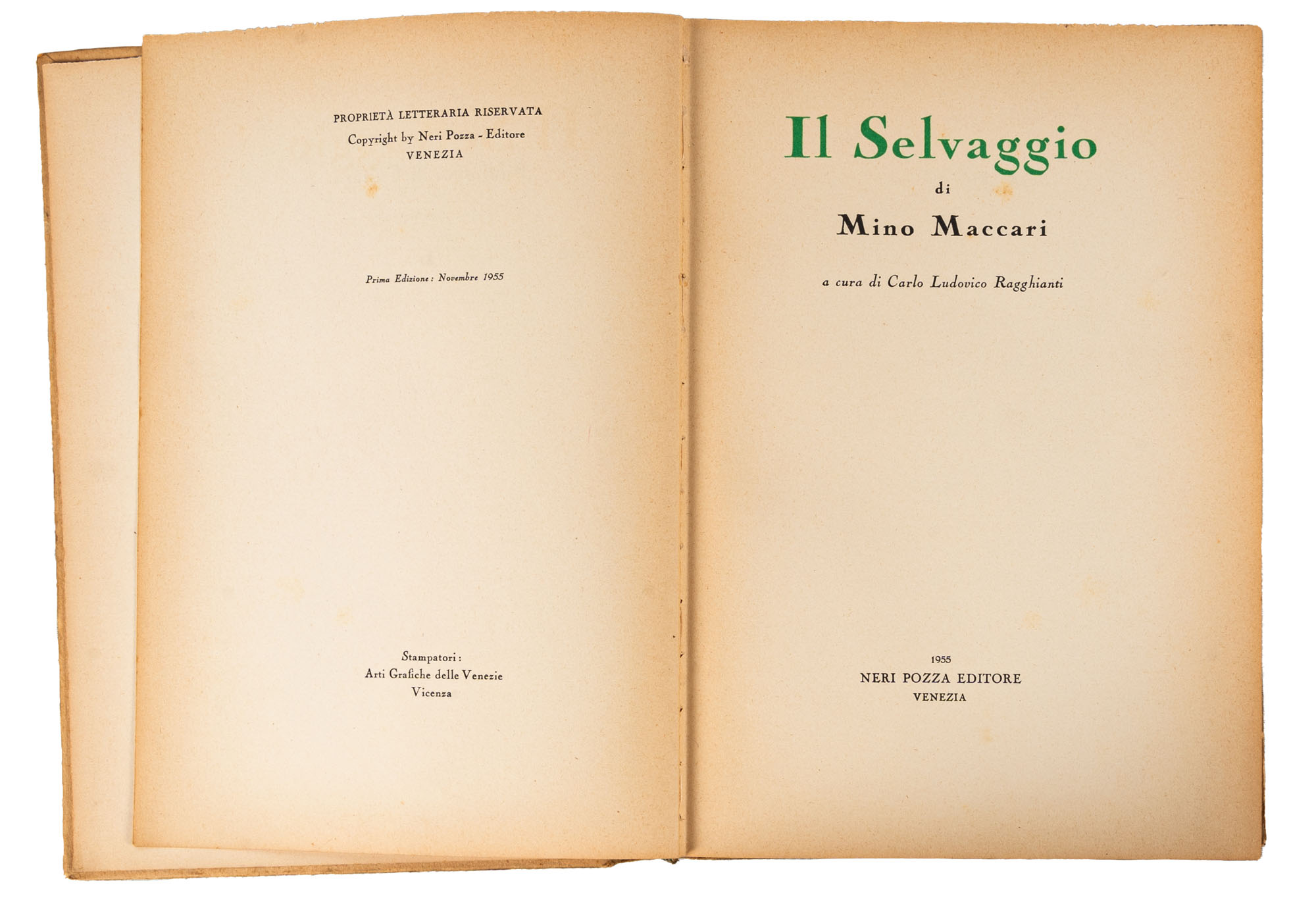 Maccari Mino - Il selvaggioNeri Pozza Editore, 1^ ed. 1955Con illustrazioni in nero e a colori nel testoCopertina rigida illustrataPp. 290Cm. 25 x 17,5Volume a cura di Carlo Ludovico RagghiantiAlla prima bianca divertente disegno a piena pagina con firma autografa e dedica dell'autore al produttore cinematografico Lionello Santi datato 3/11/1955Mino Maccari (Siena, 24 novembre 1898 - Roma, 16 giugno 1989) è stato uno scrittore, pittore, incisore e giornalista italianoSovracoperta mancante, qualche piccola macchia alla copertinaCondizioni generali molto buone