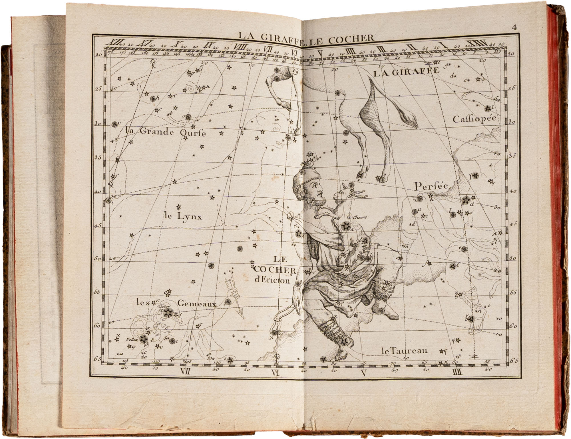 Jean Fortin - Atlas celesteMezza pelle coeva, pagg. 8+40+30 bellissime tavole in rame a doppio foglioCm. 25 x 22Celebre atlante celeste per opera di John Flamsteed, astronomo della casa Reale d'Inghilterra e fondatore della specola di Greenwich, nella versione del francese Fortin. Le tavole, ci mostrano le varie costellazioni con le immagini mitologiche, queste sono 26, le altre con Emisfero Boreale, 2 con l'Emisfero Australe, 1 col PlanisferoCondizioni molto buone