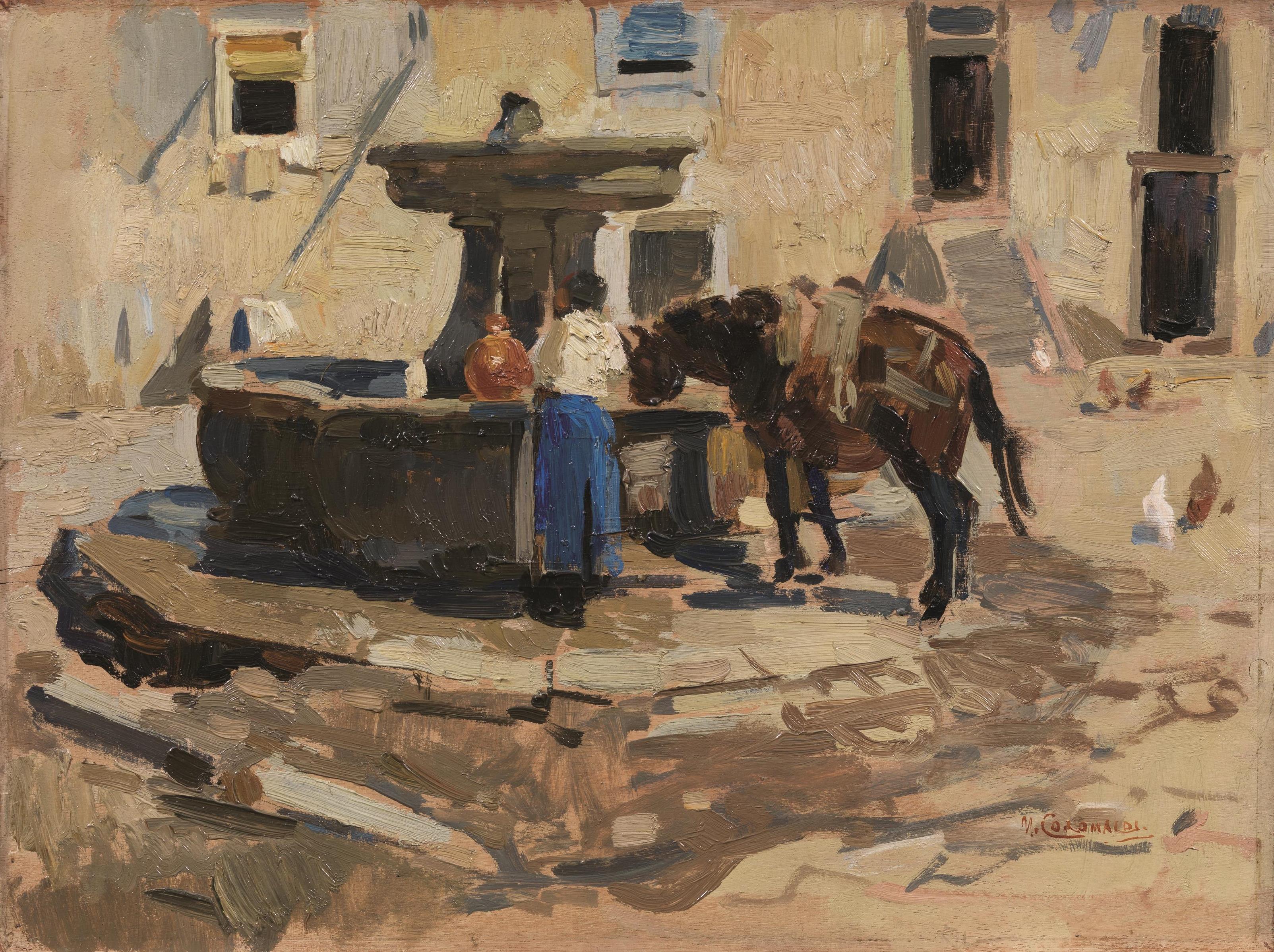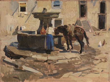Umberto Coromaldi (Roma 1870 - 1948) SORIANO NEL CIMINO, LA FONTANA olio su...