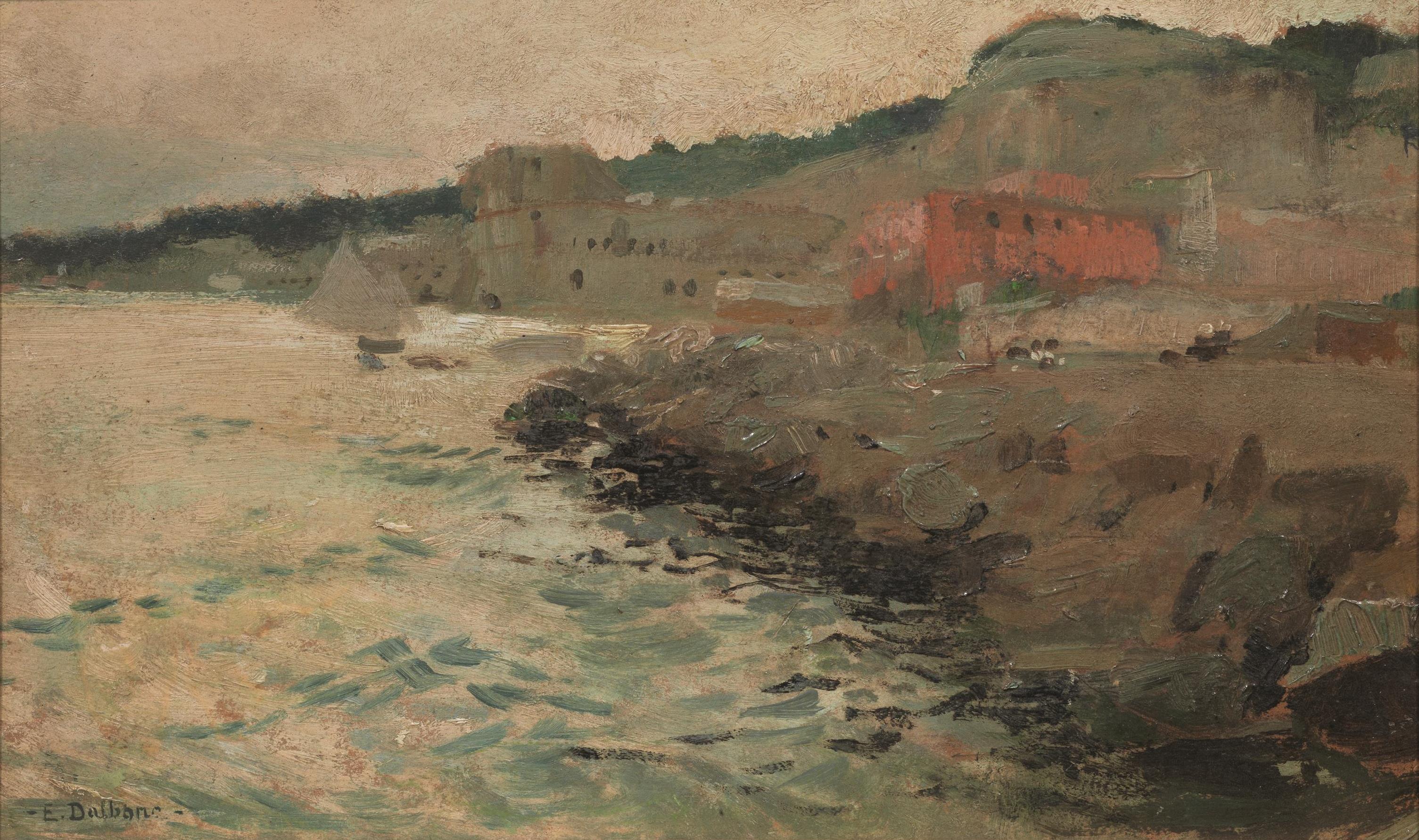 Edoardo Dalbono (Napoli 1841 - 1915) COSTIERA NAPOLETANA olio su cartoncino,...