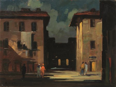 Renato Natali (Livorno 1883 - 1979) STRADE DI LIVORNO olio su masonite, cm...