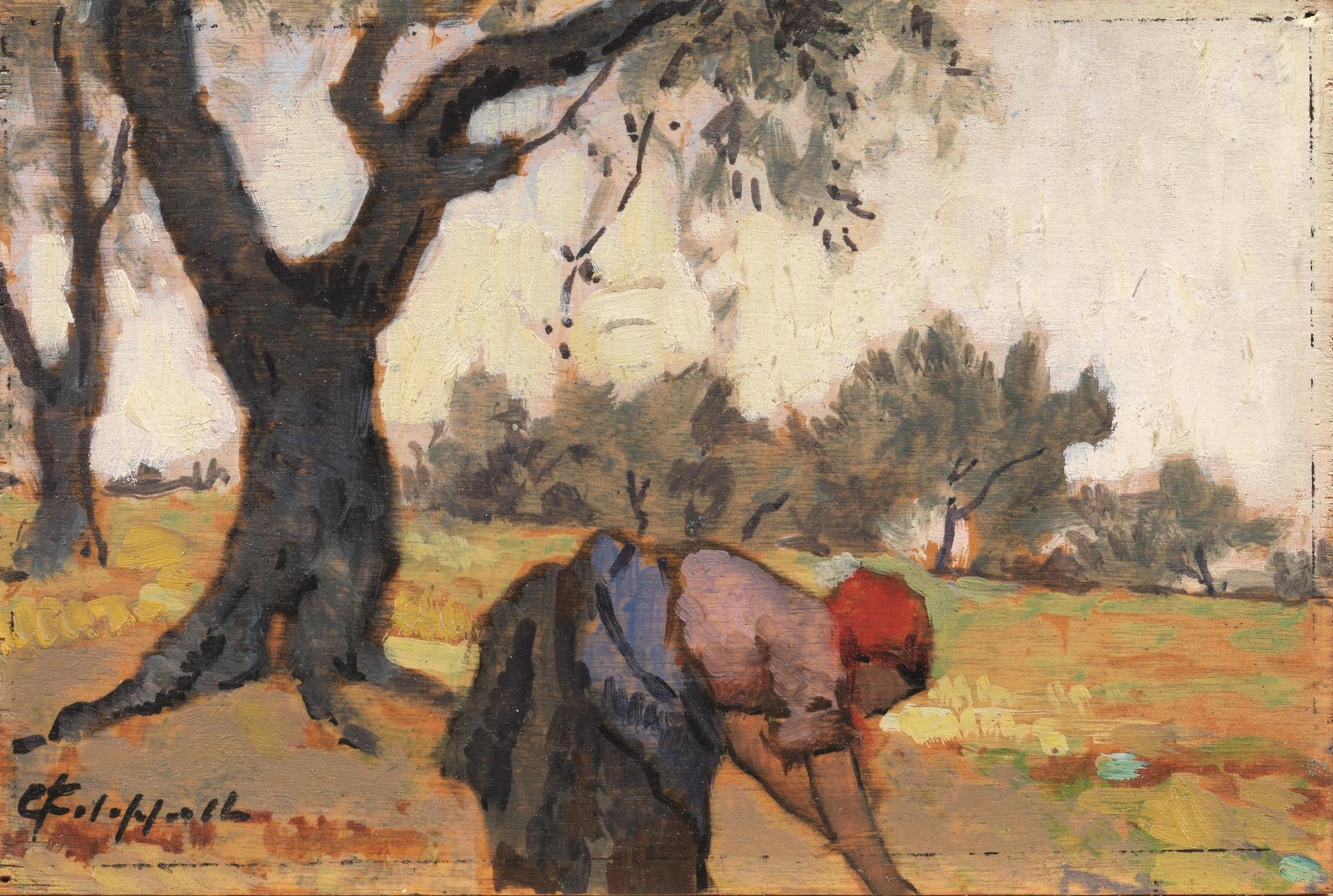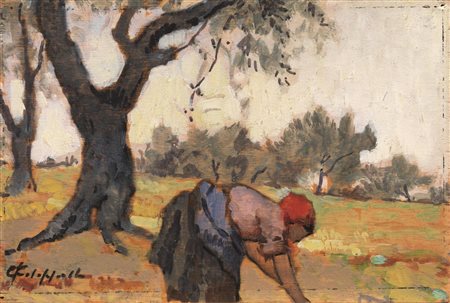 Cafiero Filippelli (Livorno 1889 - 1973) LA RACCOLTA DELLE OLIVE olio su...