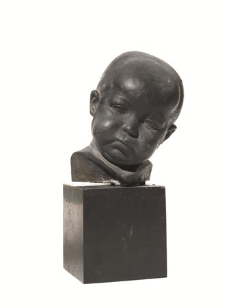 Romano Romanelli (Firenze 1882 - 1968) TESTA DI BIMBO bronzo, alt. cm 23, su...