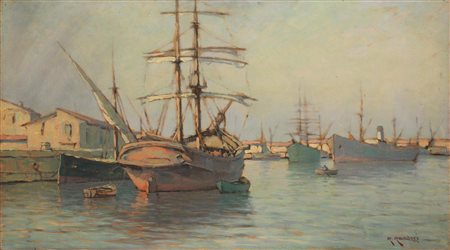 Renuccio Renucci (Livorno 1880 - 1947) LIVORNO, PORTO CON VELIERI olio su...