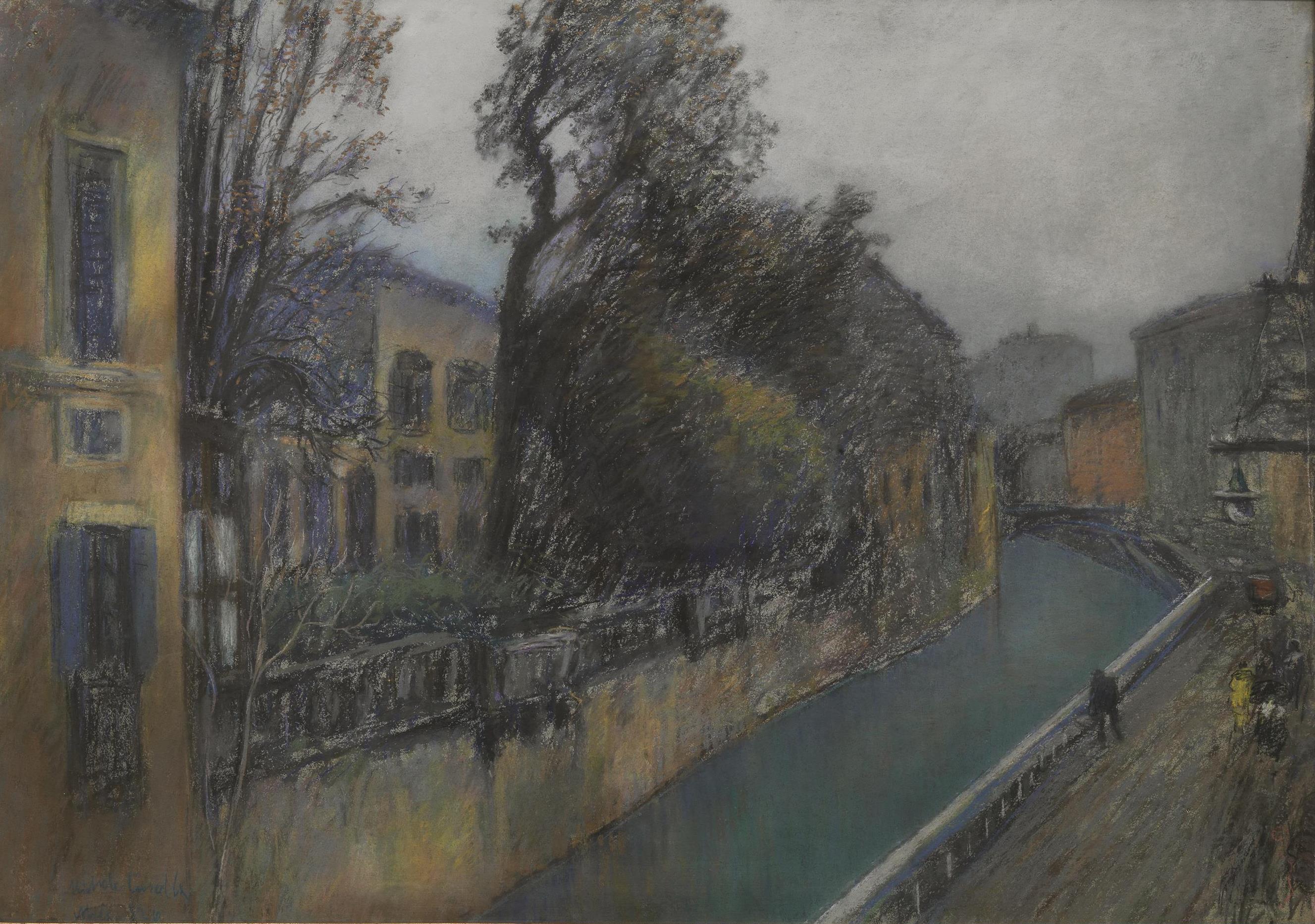 Michele Cascella (Ortona 1892 - Milano 1989) NAVIGLI A MILANO pastello su...
