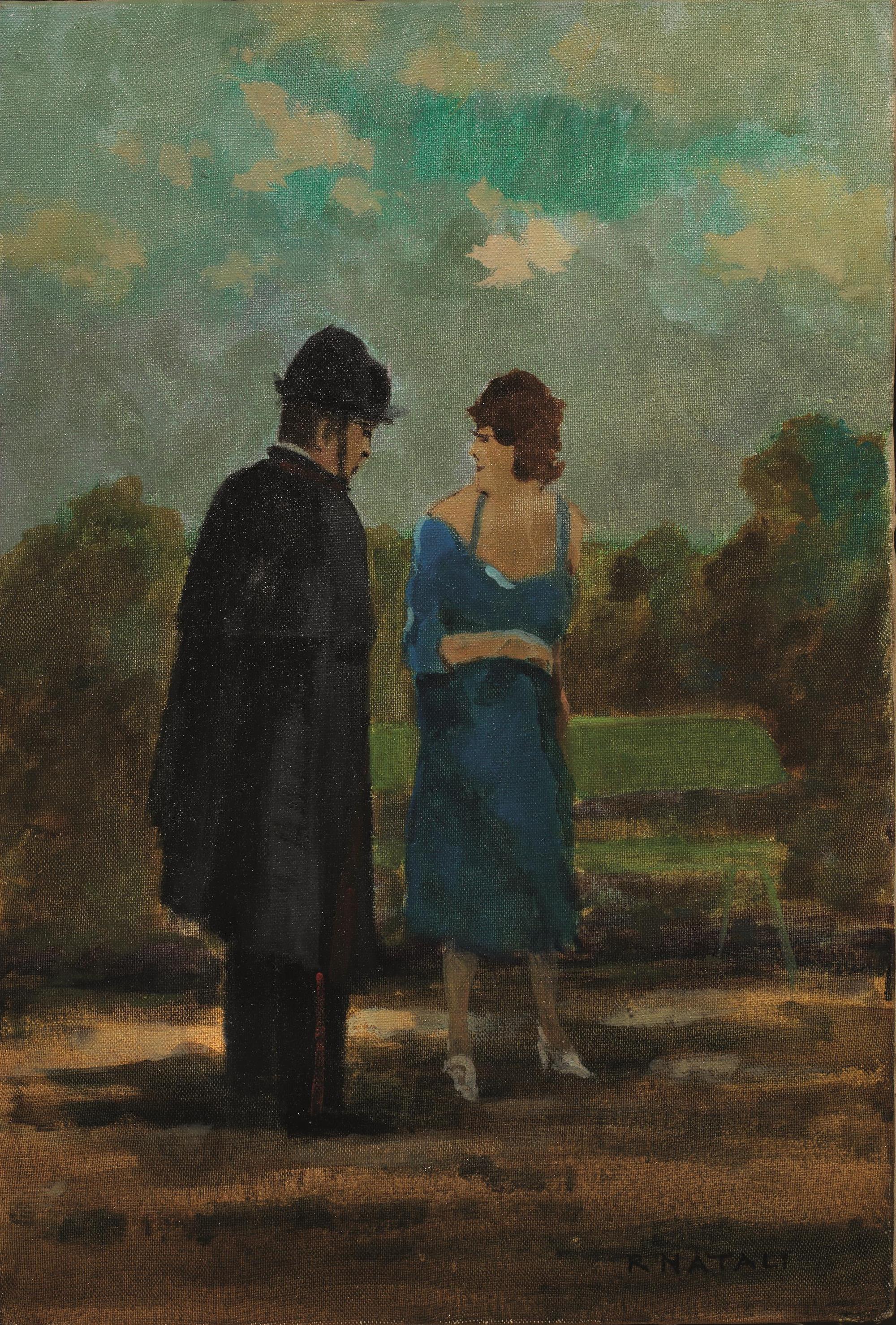 Renato Natali (Livorno 1883 - 1979) CARABINIERE E DONNA olio su tela, cm...