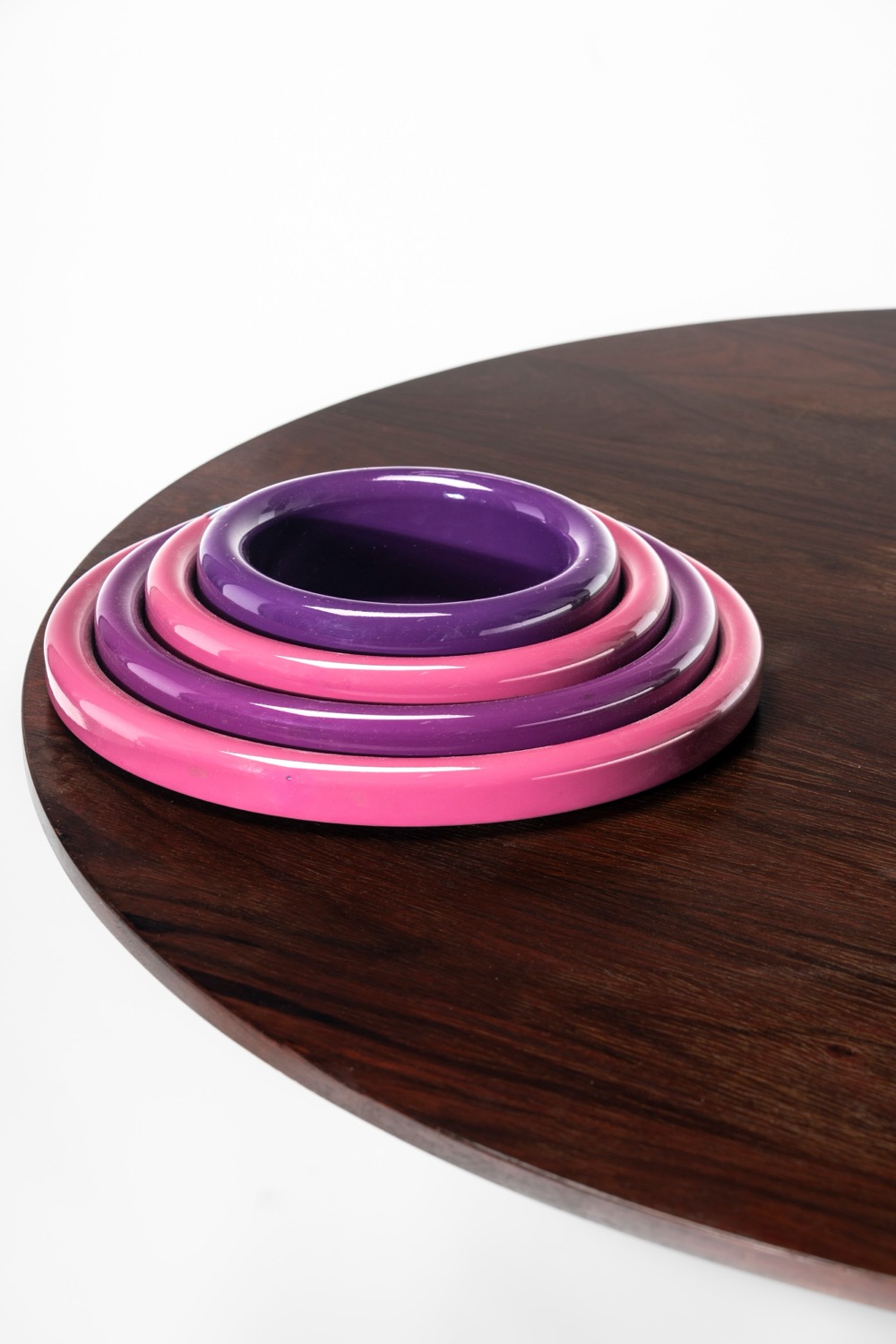Set di quattro vassoi policromi circolari dagli arredi di Casa PBH, Milano