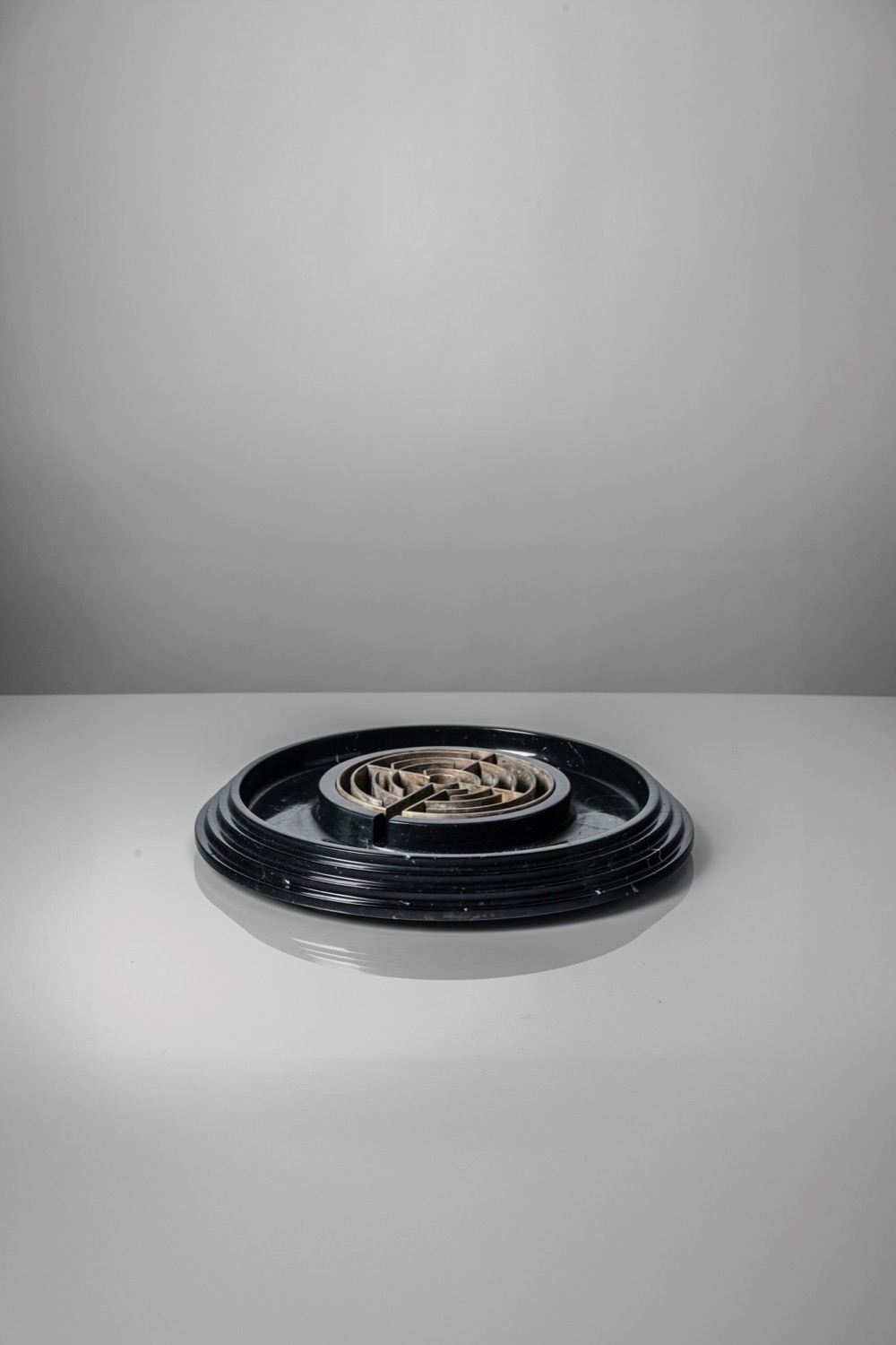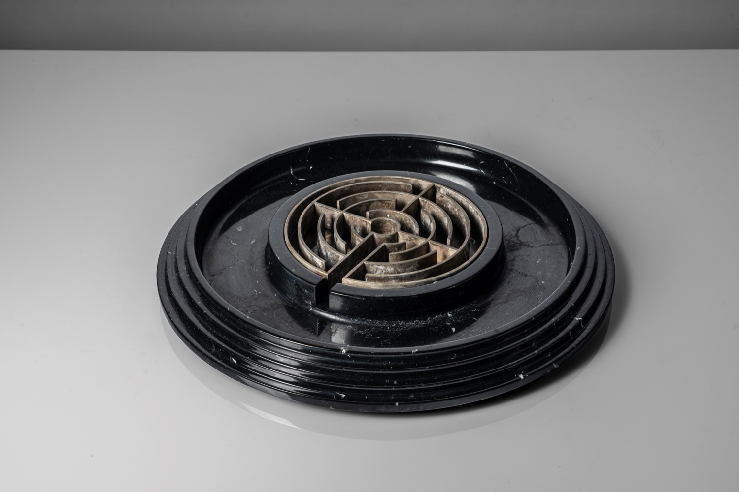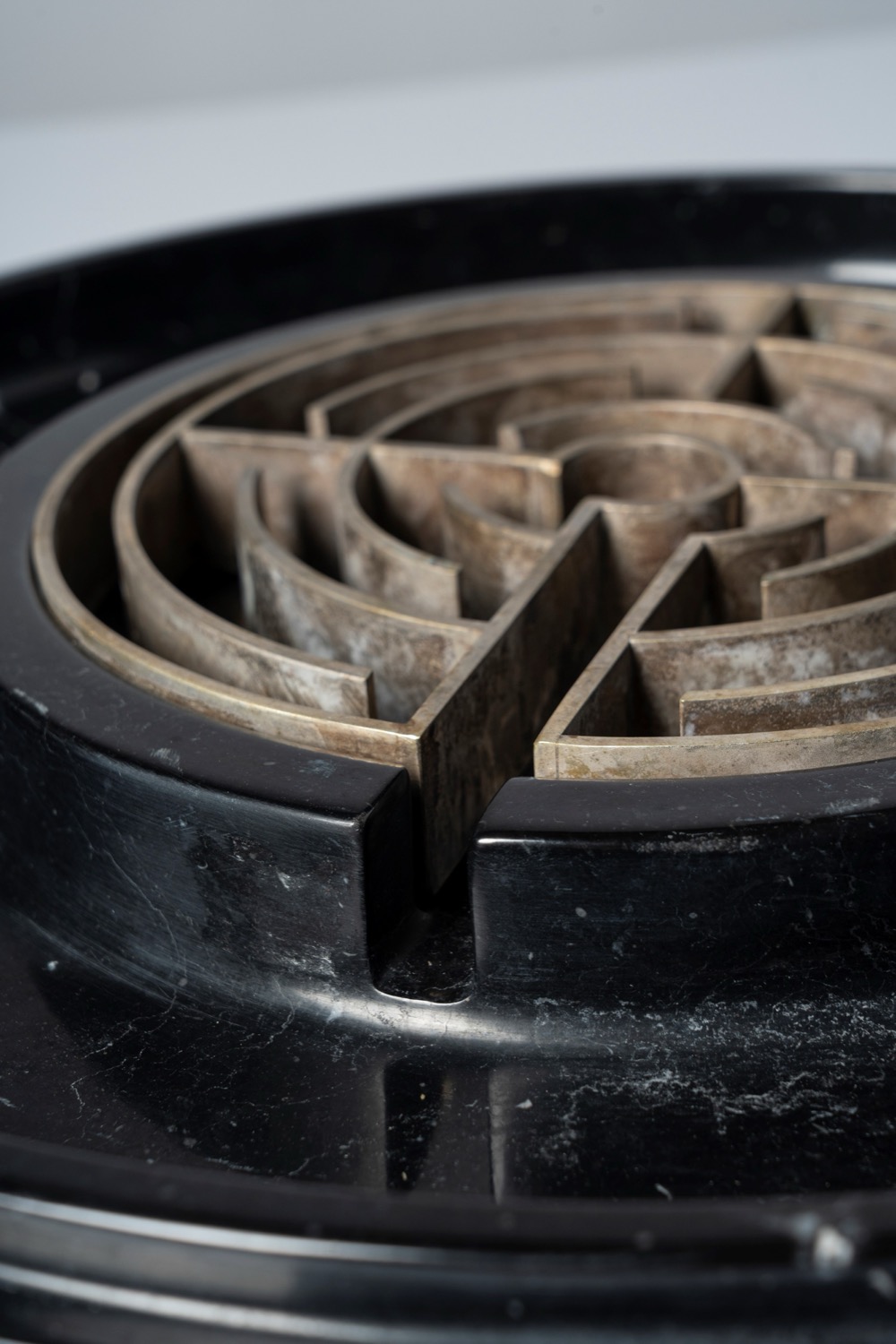 Grande centrotavola in marmo con elemento 'a labirinto' in metallo, special commission