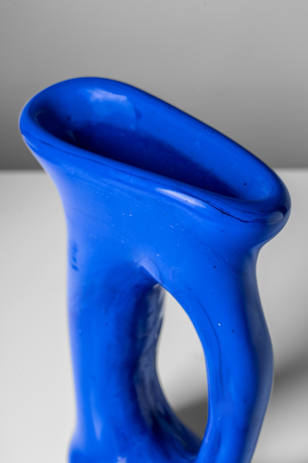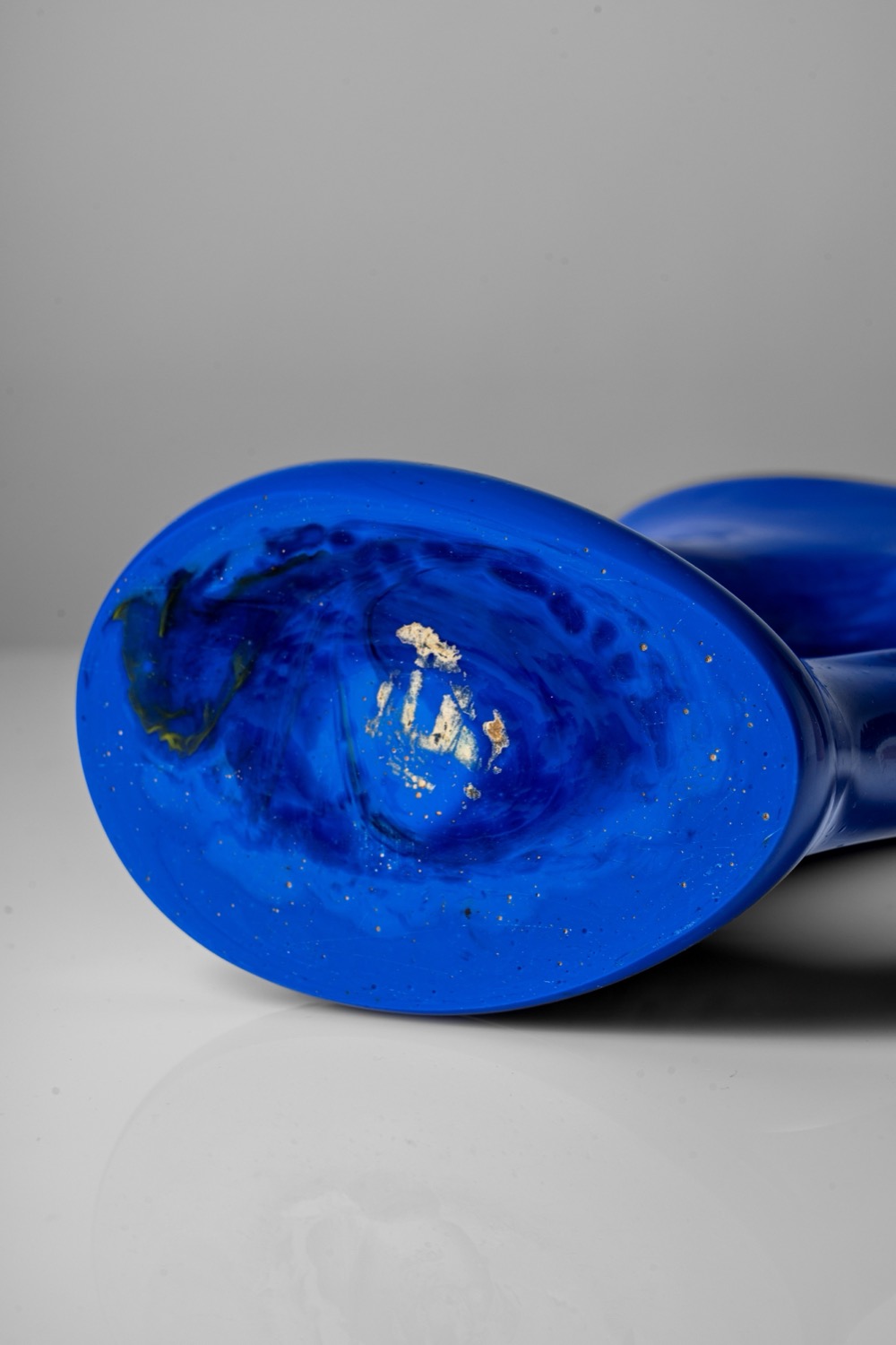 Coppia di rari vasi in pasta di vetro color cipria e blu cobalto