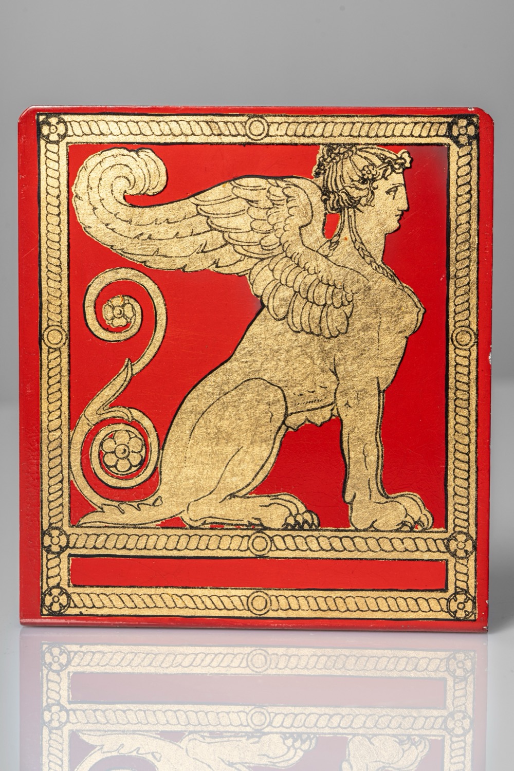 Coppia di fermalibri con decoro serigrafato 'sfinge destra e sfinge sinistra'