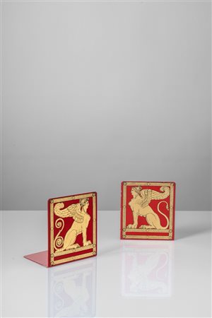 Piero Fornasetti (Milano 10/11/1913 - Milano 09/10/1988) - Coppia di fermalibri, decoro 'sfinge destra e sfinge sinistra', 1960 circa