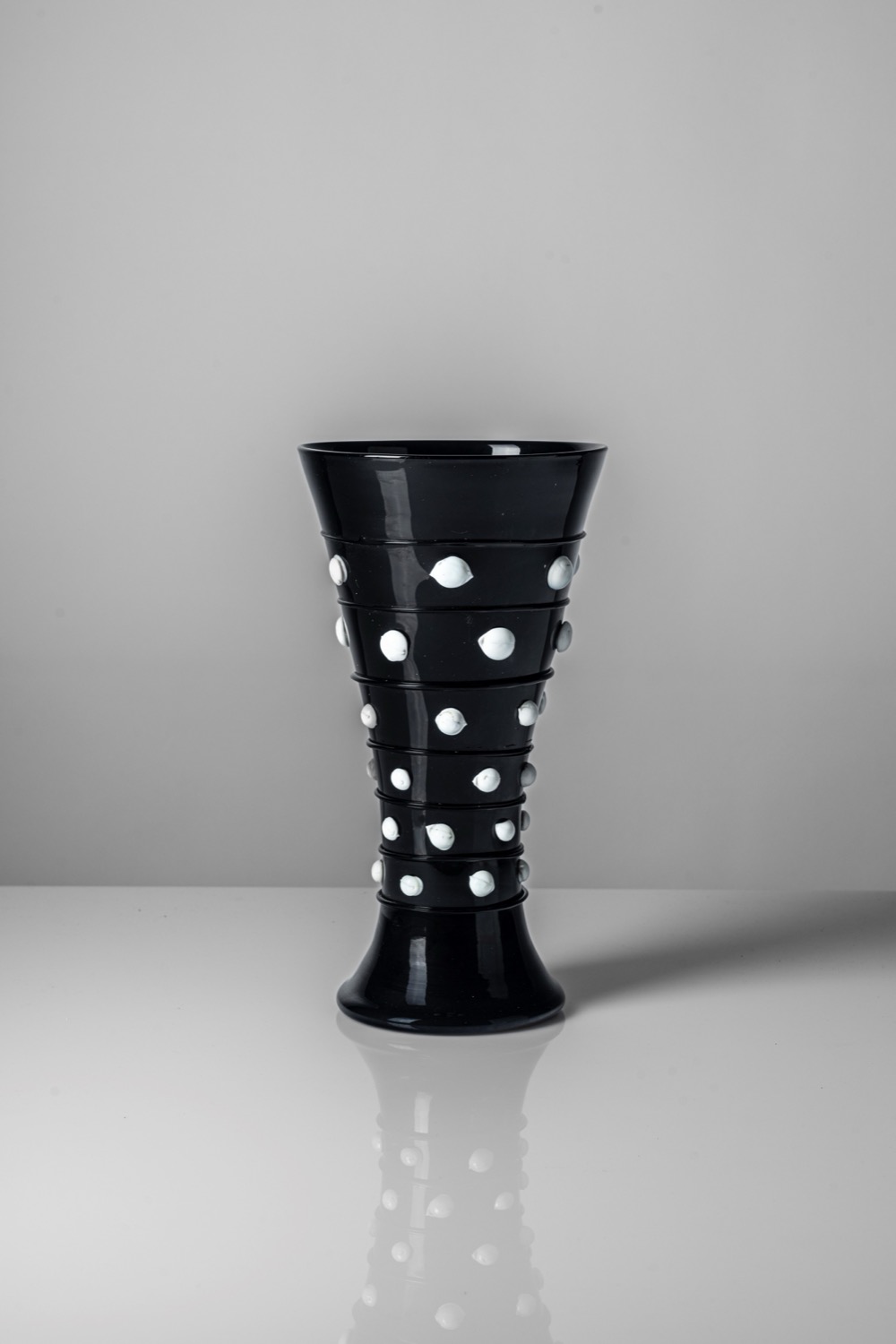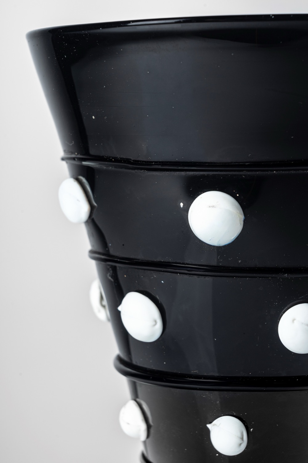 Vaso in vetro soffiato ametista scura con decoro applicato in pasta di vetro