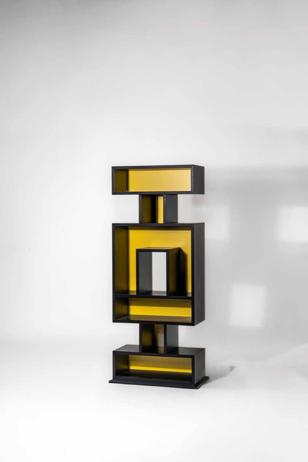Libreria bifacciale con struttura geometrica, pezzo unico dalla collezione 'Ollo'