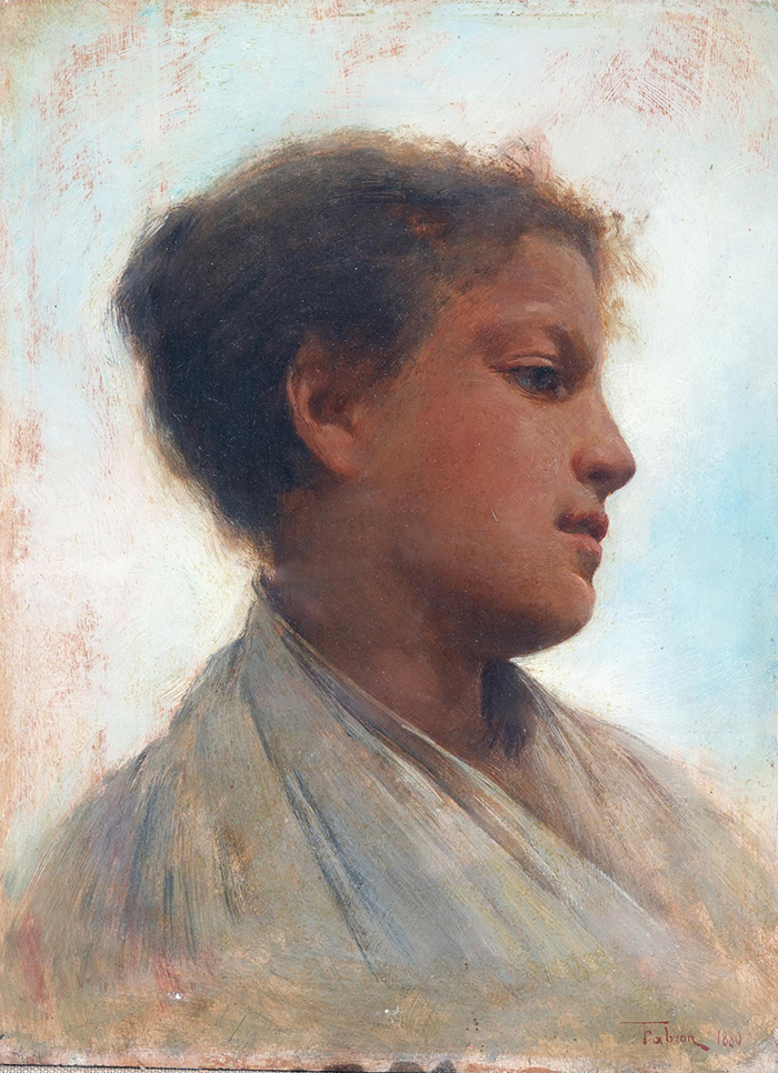 Fabron Luigi (Torino 1855 - Pozzuoli, NA 1907) Ritratto olio su tavola, cm 32,5x24 firmato e datato in basso a destra: Fabron 1880