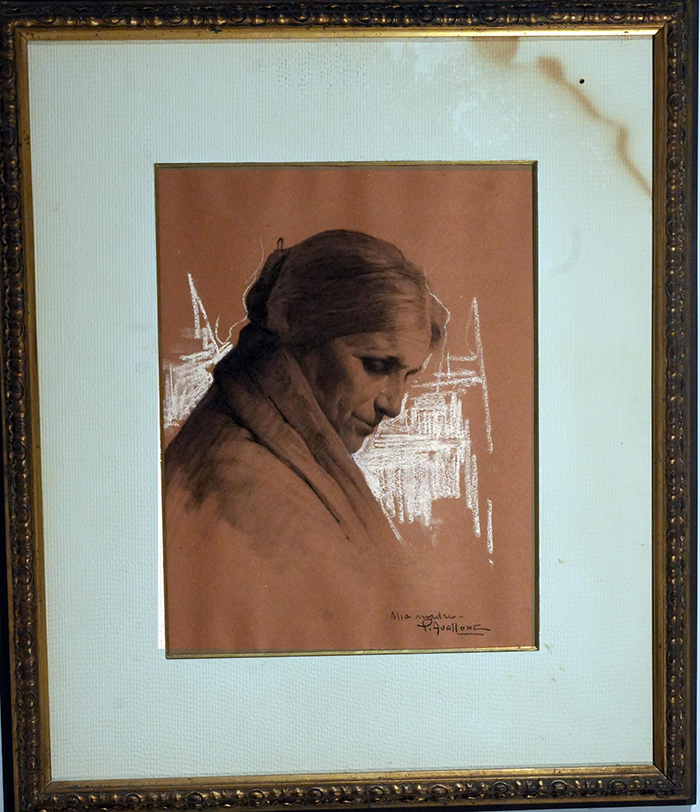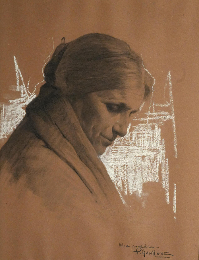 Avallone Pasquale (Salerno 1884 - 1965) Mia madre tecnica mista su carta, cm 39x30 firmato e dedicato in basso a destra: Mia madre P. Avallone Provenienza: Eredi dell'artista