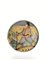di maiolica, decorata in giallo, giallo arancio, manganese nei toni del marrone e del nero, verde, azzurro. La forma svasata, con orlo arrotondato, poggia su un piede appena rilevato. Il centro del cavetto mostra un personaggio con bastone che incede in un paesaggio con alti monti., alt. cm 6, diam. cm 30,5