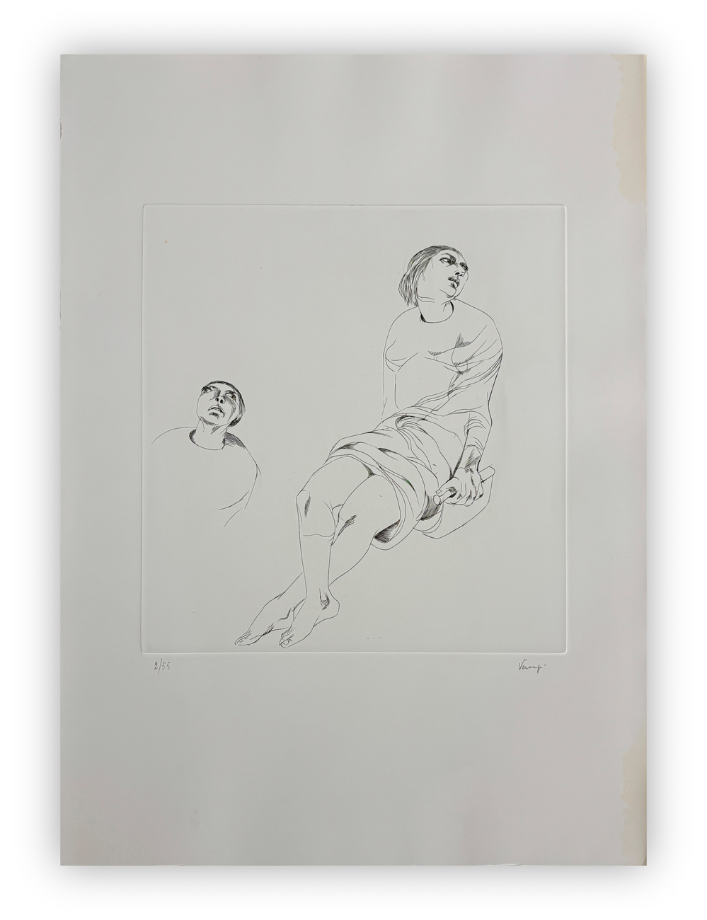 Cartella contenente testo di presentazione di Pier Carlo Santini e sei incisioni a bulino di Giuliano Vangi, ciascuna recante firma e numerazione (Esemplari 2/55) a matita al fronte