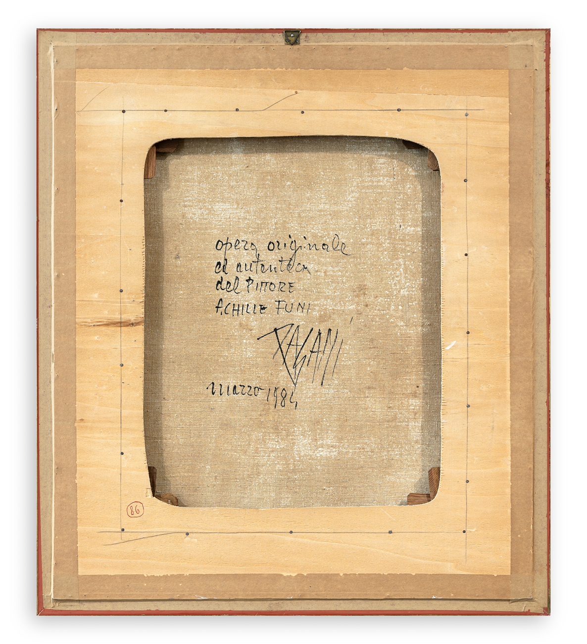 Firma e dichiarazione di autenticità e provenienza del gallerista Pagani al retro