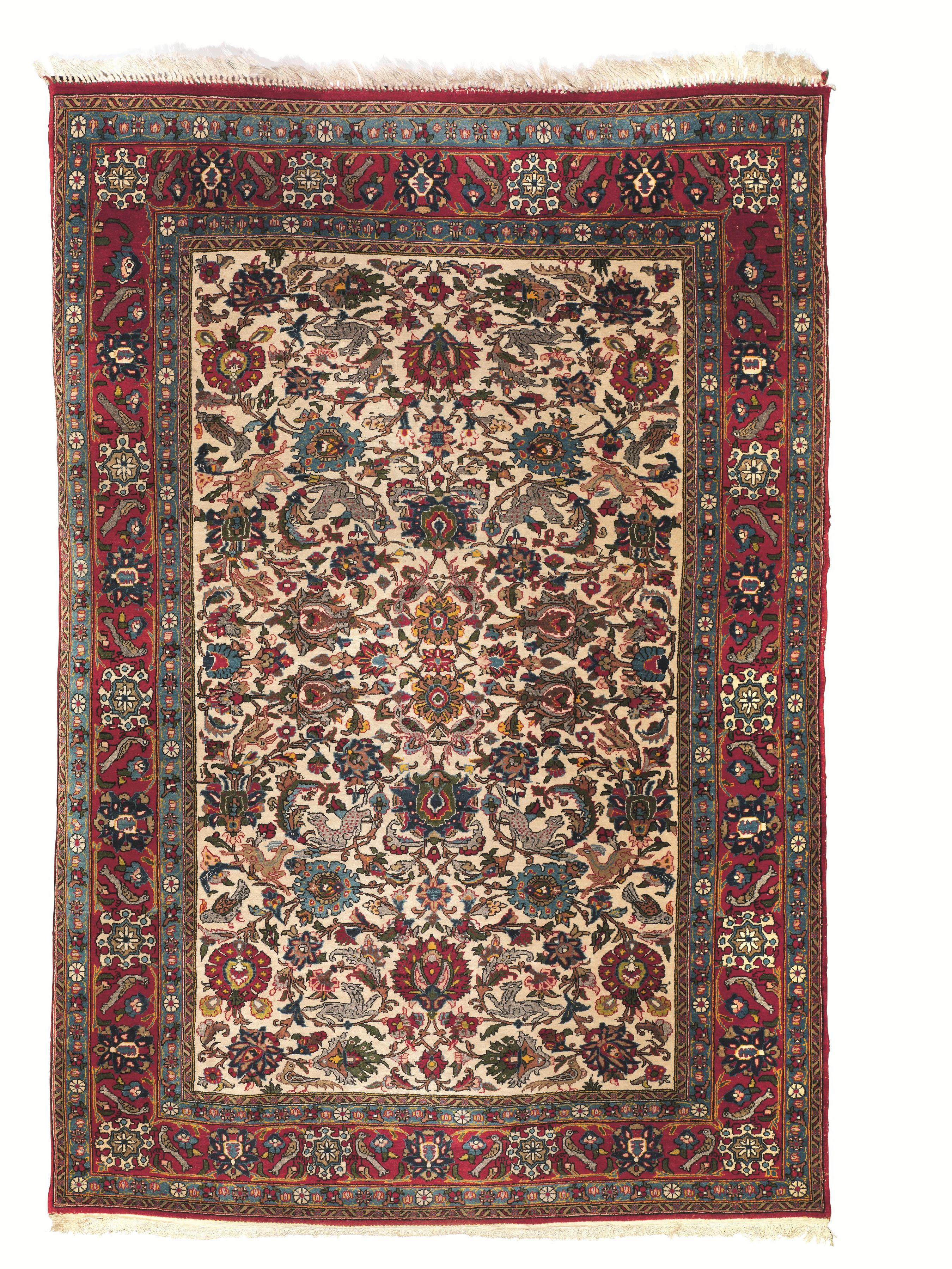 Lot 362 | TAPPETO PERSIANO QUM, INIZI SECOLO XXfondo avorio con decori floreali verdi e...