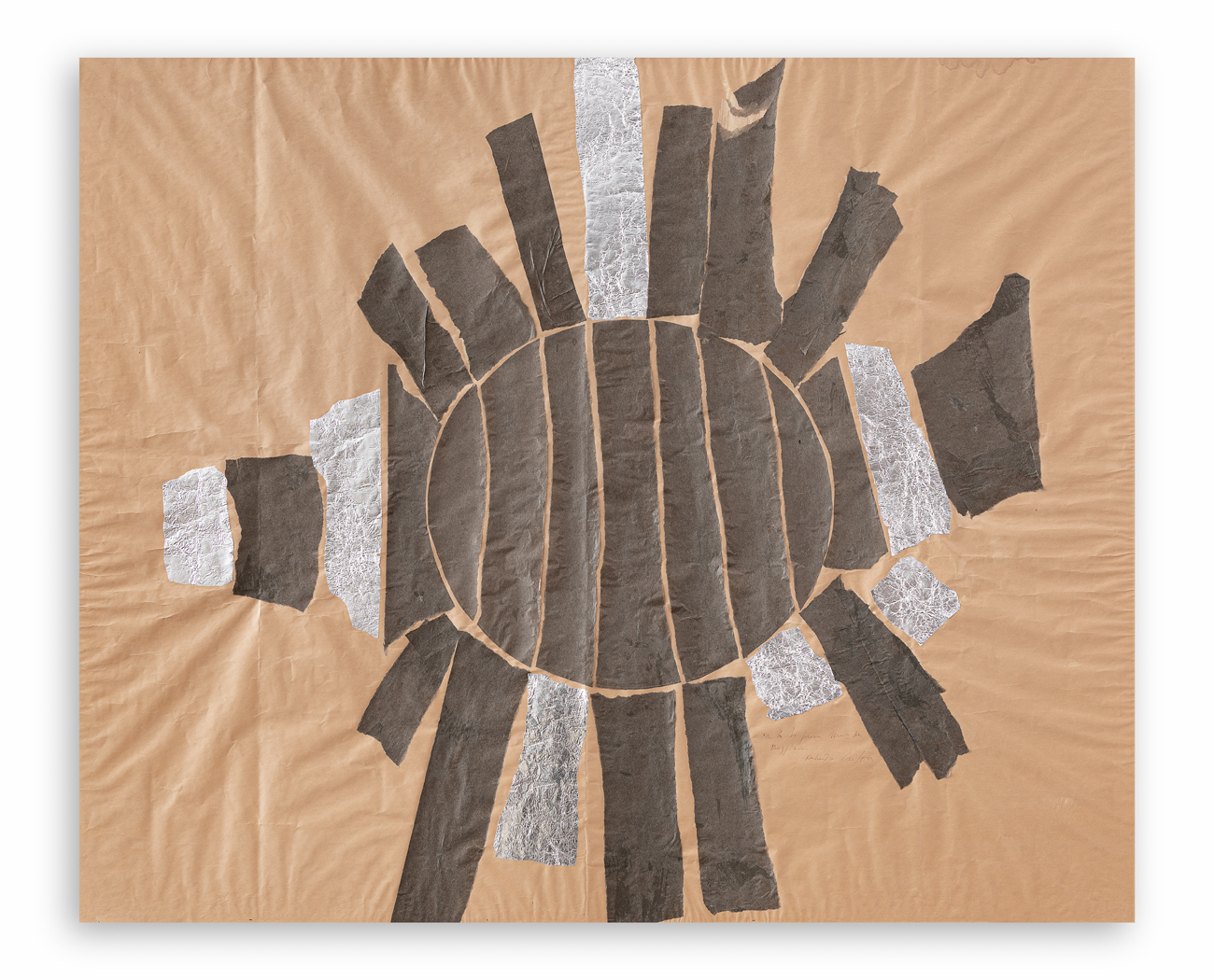 Collage di carte sagomate e carta alluminio su carta da pacco