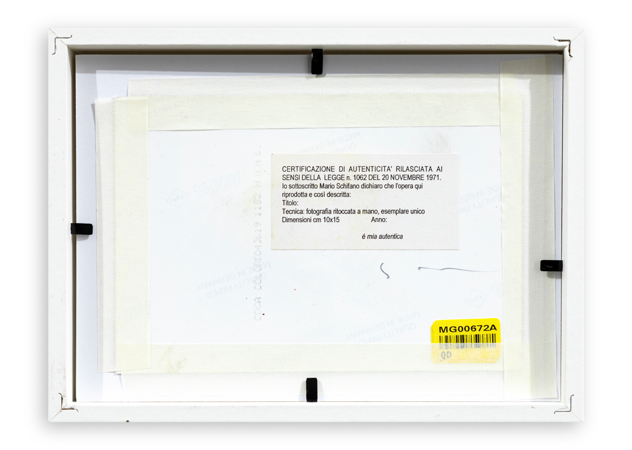 Certificato di autenticità a cura dell'Archivio Generale dell'Opera Pittorica di Mario Schifano - Fondazione Mario Schifano (RM) rilasciato in data 24/09/2007
