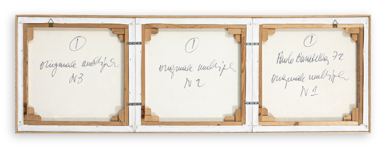 Titolo e indicazioni per il posizionamento al retro della seconda e della terza tela