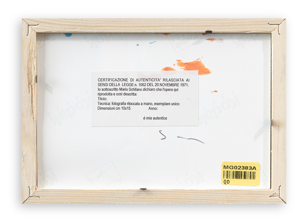 Certificato di autenticità a cura dell'Archivio Generale dell'Opera Pittorica di Mario Schifano - Fondazione Mario Schifano (RM) rilasciato in data 25/10/2007