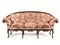 in noce, spalliera centinata, braccioli intagliati a volute, gambe mosse si piedi a ricciolo, ricoperto in seta operata, lungh. cm 238