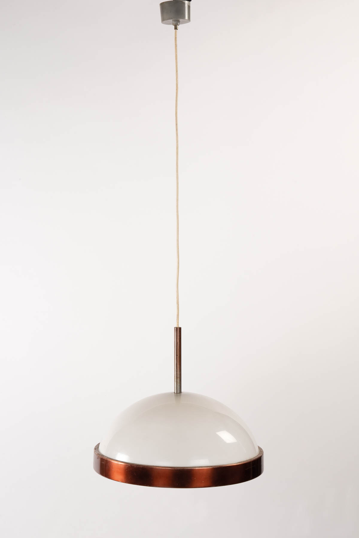 Italienische Manufaktur/Manifattura italiana Lampada a sospensione;Vetro opalino, Acciaio e rame