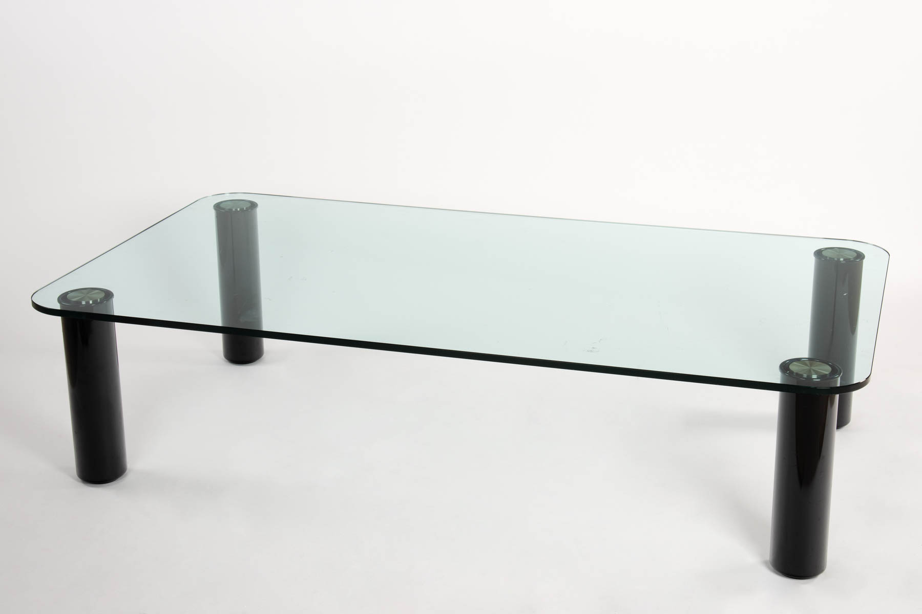 Zanotta (zugeschrieben/attribuito) Couchtisch;Piano in cristallo, gambe in acciaio inox verniciato