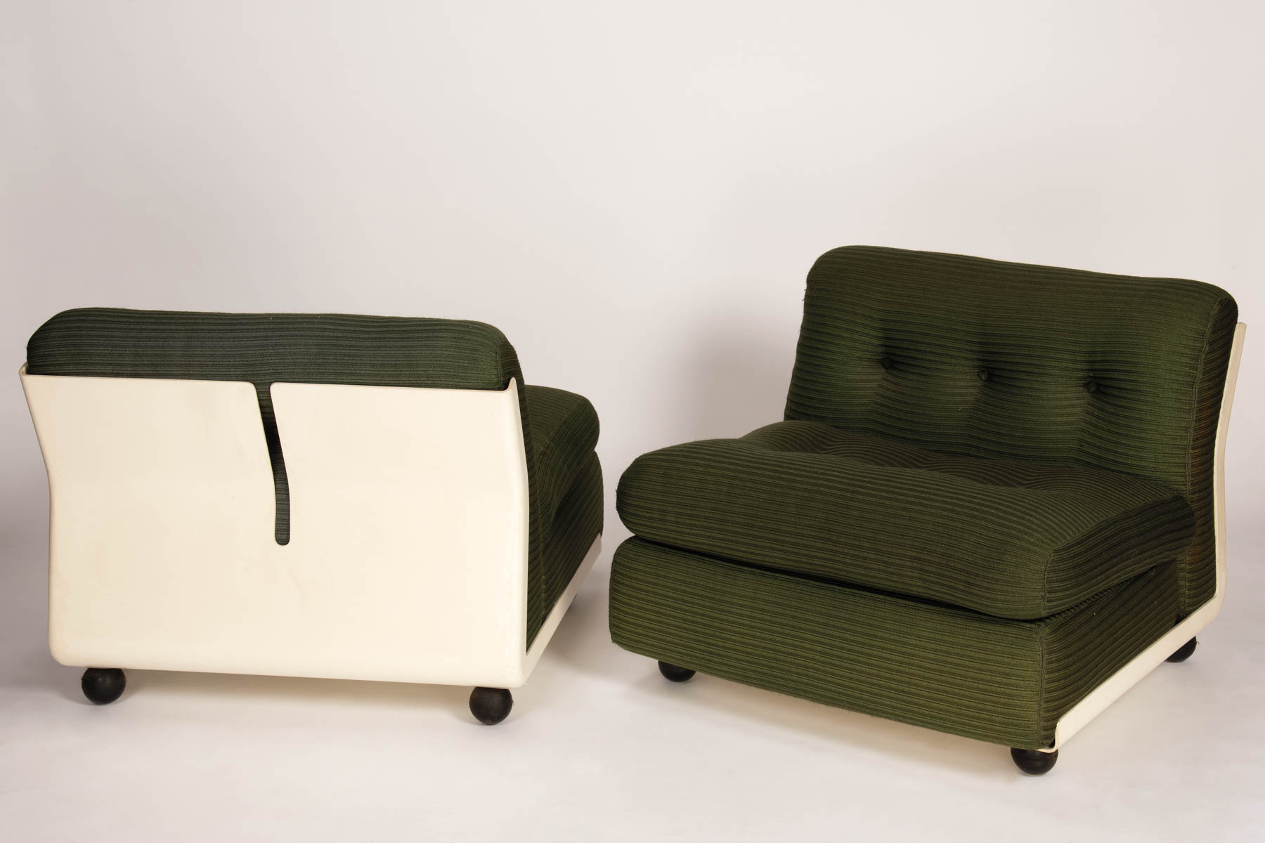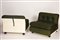 Mario Bellini Paar Sessel Modell Amanta Coppia poltrone modello Amanta;Struttura in plastica rigida bianca, cuscini in velluto verde, h. 40 x 120 x 60 cm, produzione C&B Italia (etichetta)