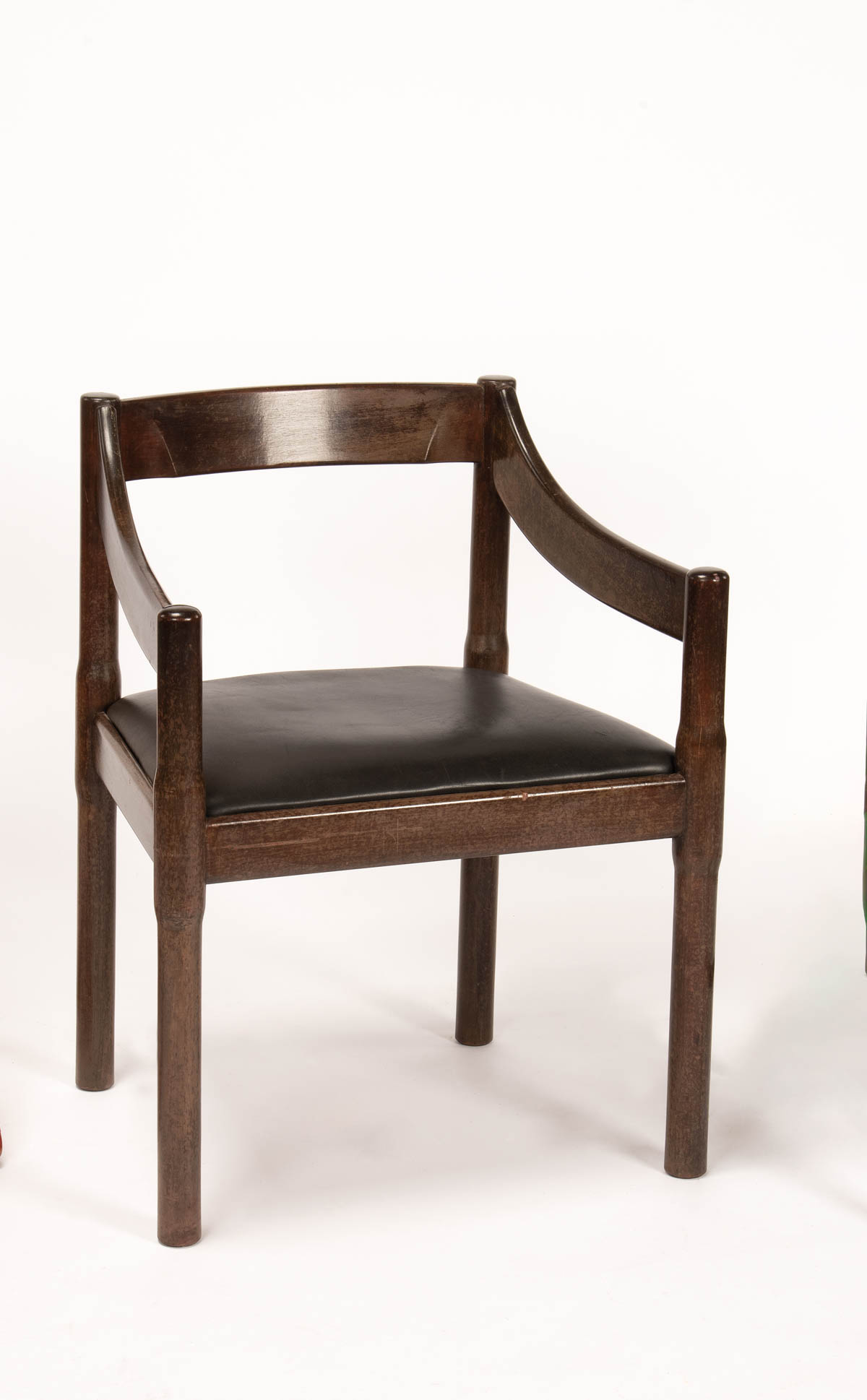 Vico Magistretti (zugeschrieben/attribuito) Sedia modello Carimate, Anni ‘70;Legno, seduta in pelle, h. 74 x 52 x 46 cm