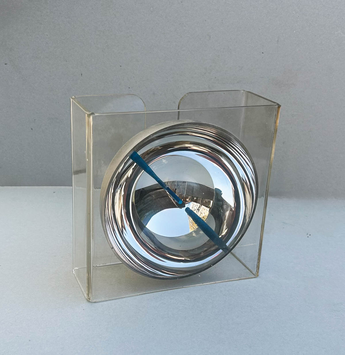 Specchio entro plexiglass, 17 x 17 x 6,5 cm, scritta